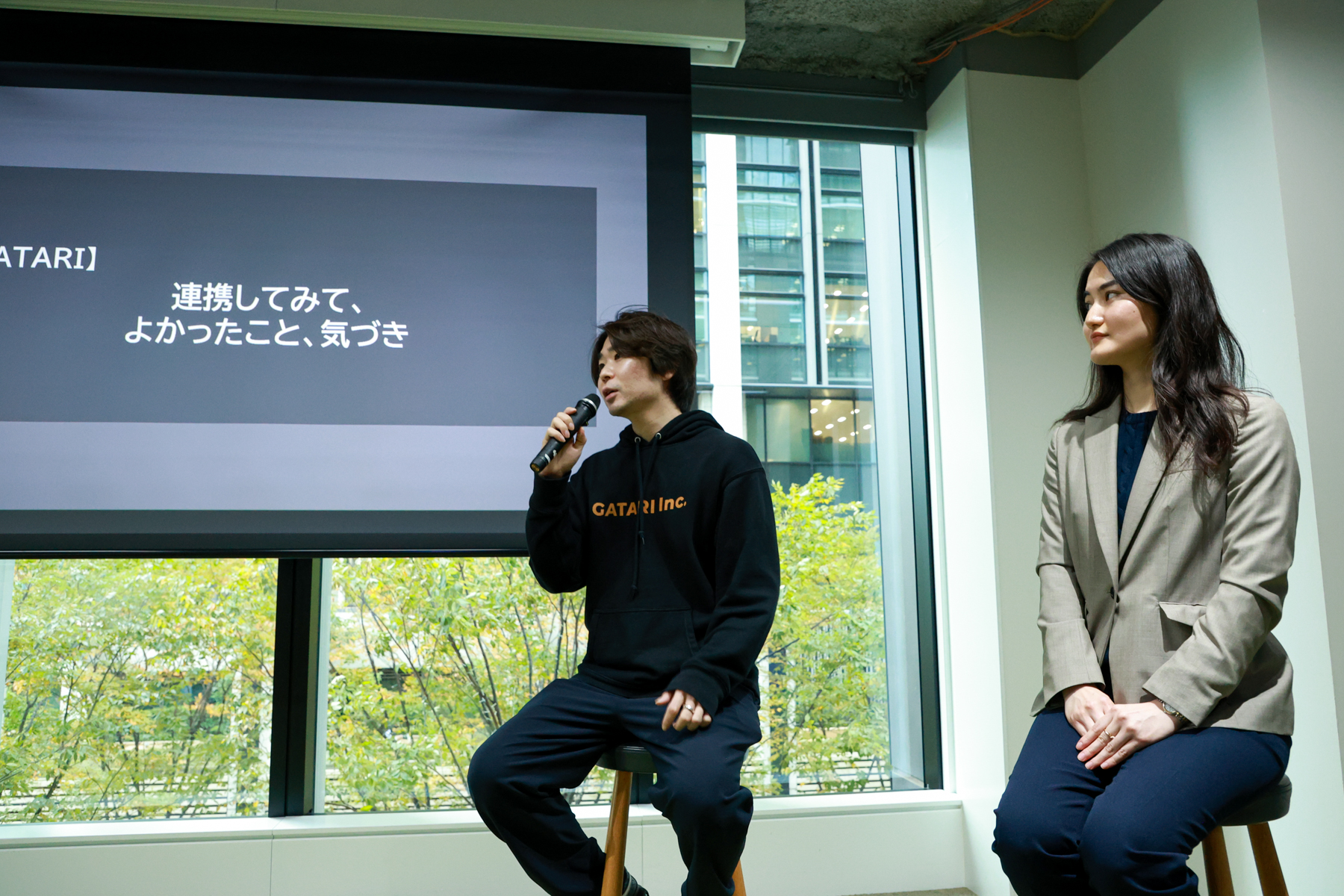 報告会では、本プロジェクトの概要説明と新たに採択されたスタートアップ3社、および過年度から継続的に取り組む5社を含む採択事業者計8社の紹介のほか、GATARI×三菱地所の注目プロジェクト「視覚障がい者を含む、誰もがアートを体験できる音声ガイドコンテンツ」についてトークセッションが行われた。