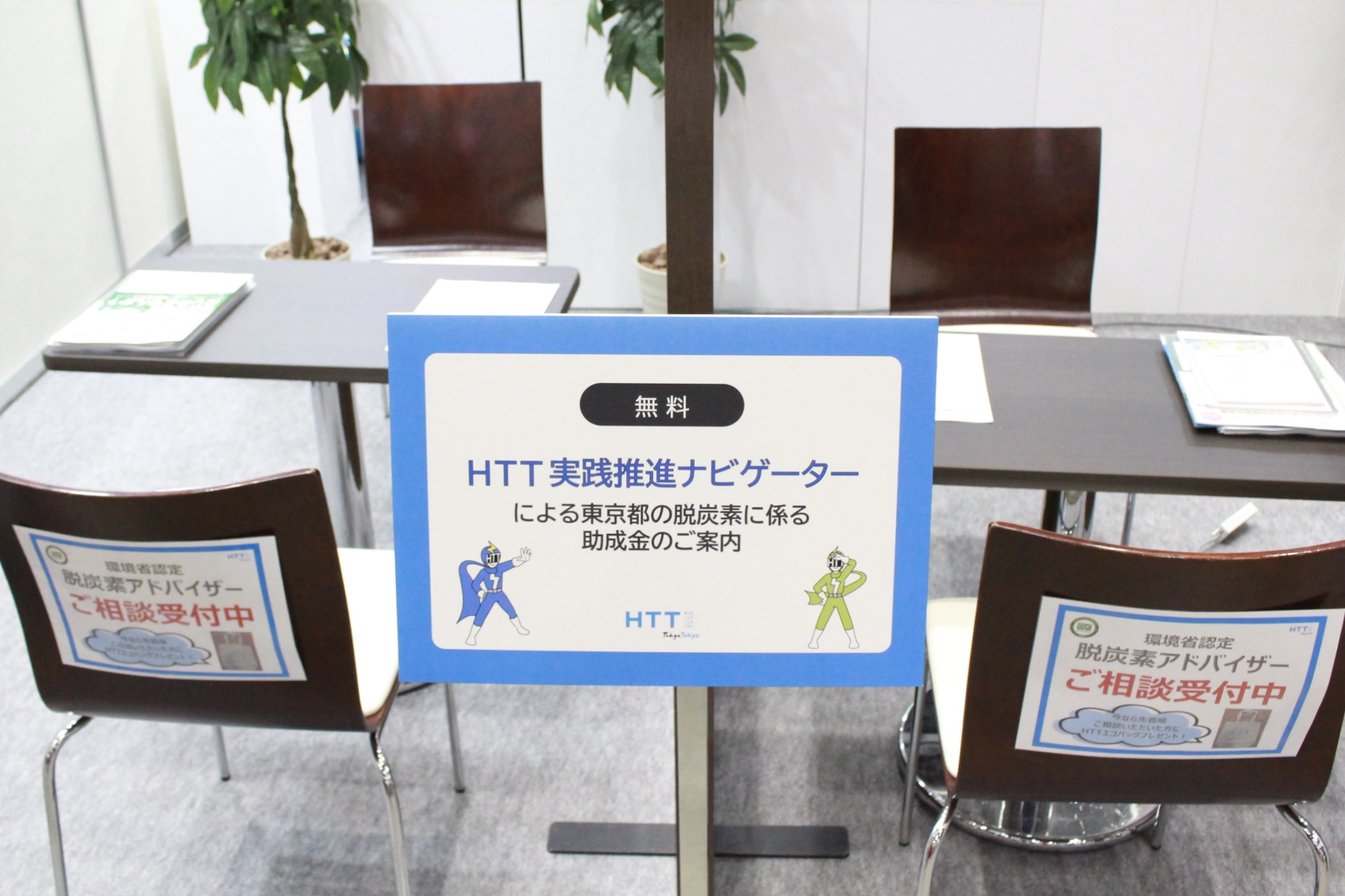 開催中は、さらに、HTT実践推進ナビゲーターに直接相談できるスペースも用意された。省エネ・脱炭素などの悩みを直接相談でき、都の助成金から最適なものを提案してもらえる。