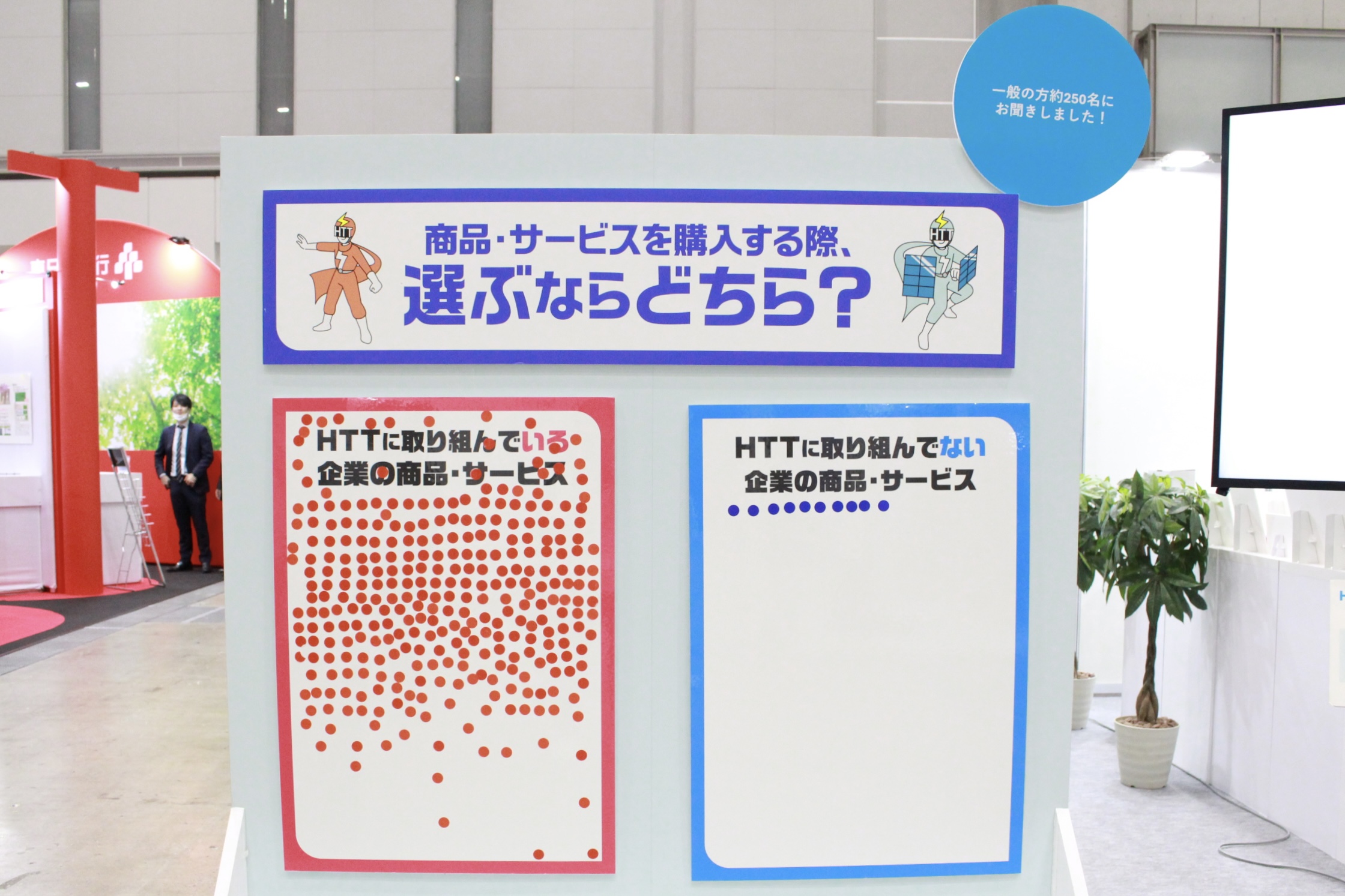 ブースの最後には、約250名が回答したHTTアンケートの結果を掲示。来場者がHTTに取り組む企業の商品やサービスに関心を寄せていることを可視化した。