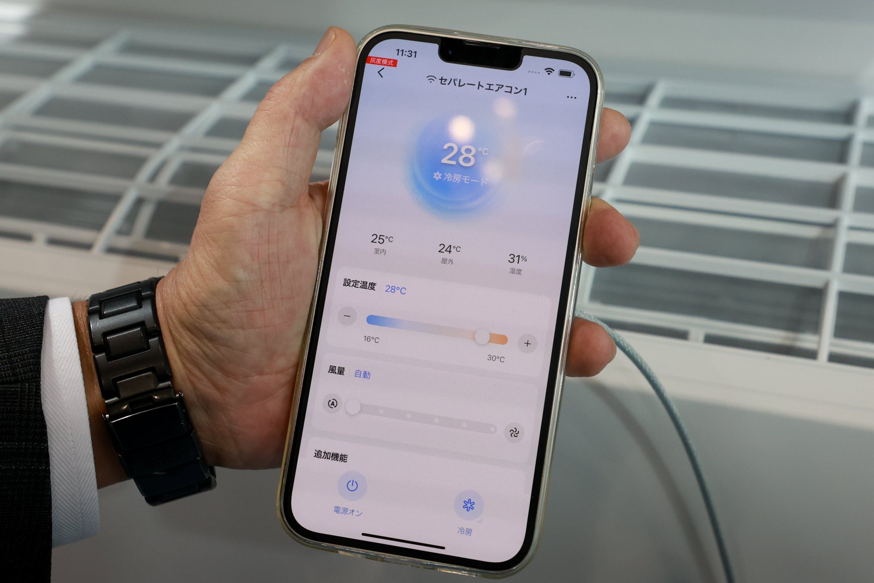 ハイグレードモデルの「MXシリーズ」は、2025年に自動お掃除機能を搭載したハイグレードモデルとしてラインナップに追加された注目商品だ。2026年モデルは前年モデルからさらに進化し、センサーを搭載したことによって、人の不在を検知して省エネと快適性を両立する「新AI エコ」や、自動で「風あて・風よけ」を行う機能が採用されている。
