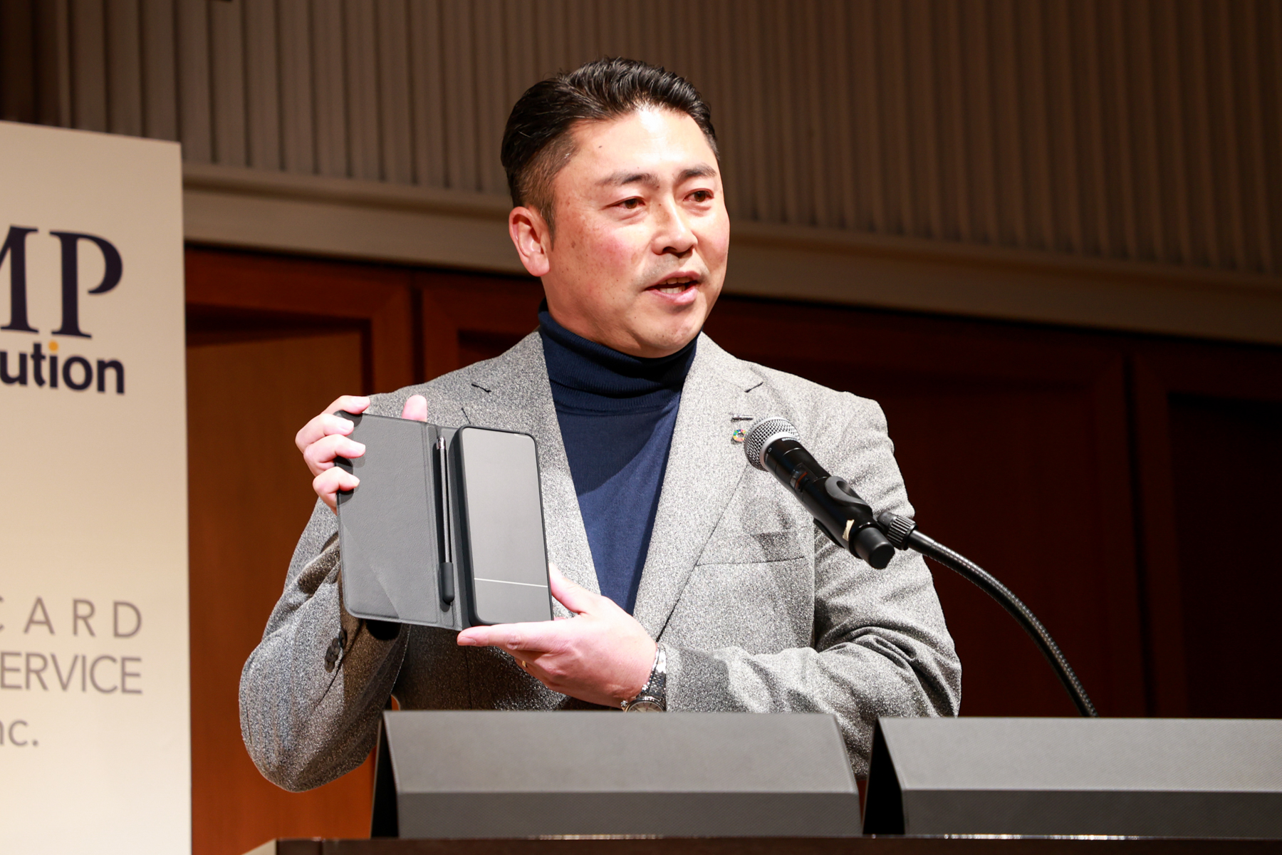 発表会当日、新決済端末の「S-Pitt Air」と「S-Pitt Mobile」についてはカードサービス株式会社 代表取締役社長 齋藤賢志氏が登壇し説明した。