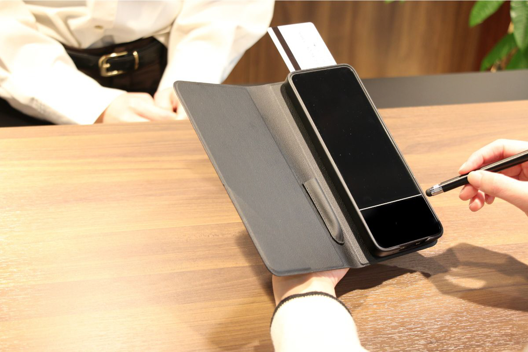 また、手帳型という形状には意味があり、「Sign on Paper」という所作をデジタルで継承するためだ。フルフラットのキーパッドを採用し、ユーザビリティを追求したハードPINを実装し、視覚に障がいのある方が安心して使用できるようにシリコン製のラバーパッドも用意されている。スマートフォン型のソフトPINでは数字の配置がランダムに変わるが、本端末では番号位置が固定されていて、直感的に操作できる。