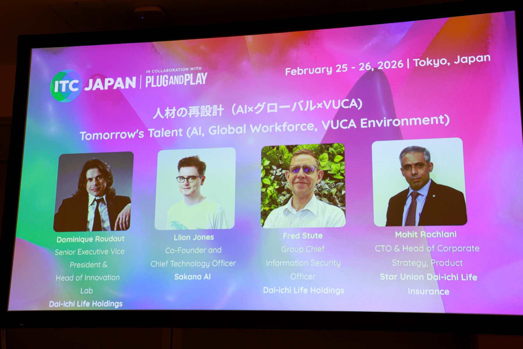 第一生命グループの役員・シニアリーダー層が登壇したほか、Sakana AIの共同創業者であるLlion Jones氏はじめ、さまざまなゲストスピーカーを招いたイベントとなった。