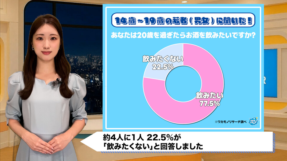 全国の14歳から19歳を対象に、20歳を過ぎたらお酒を飲みたいか調査が行われました。