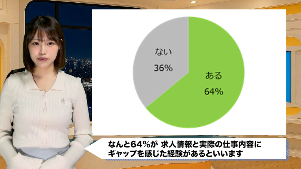 なんと64%が、求人情報と実際の仕事内容にギャップを感じた経験があるといいます。