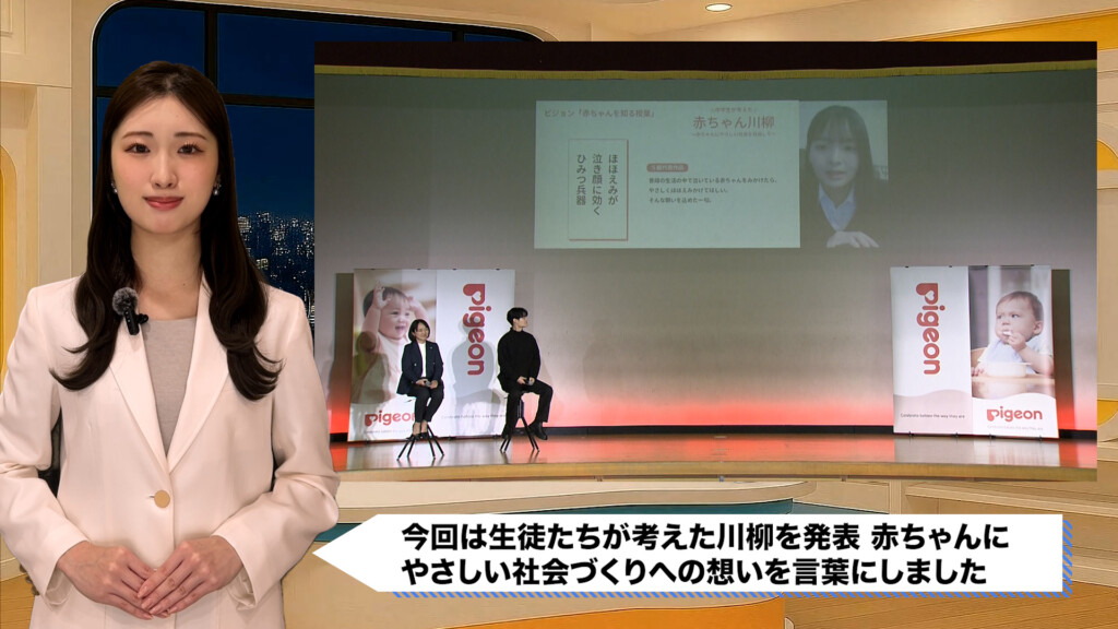 今回は生徒たちが考えた川柳を発表。赤ちゃんにやさしい社会づくりへの想いを言葉にしました。