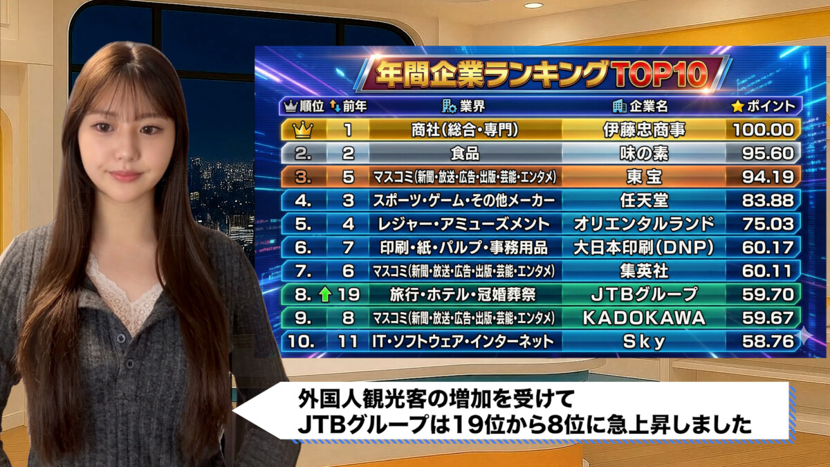 さらに旅行業界も復活。外国人観光客の増加を受けて、JTBグループは19位から8位に急上昇しました。