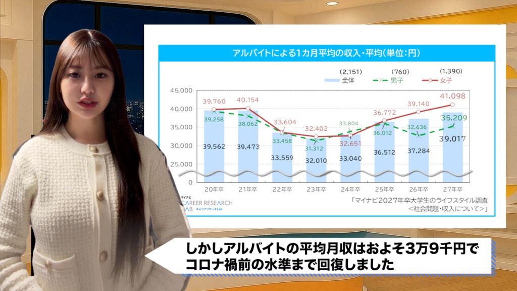 しかしアルバイトの平均月収はおよそ3万9千円で、コロナ禍前の水準まで回復しました。