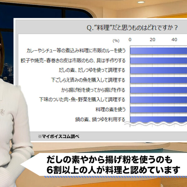カップ麺にお湯を注ぐ、これって料理でしょうか? 実は、何を料理と呼ぶかは人によって大きく違うようです。 マイボイスコムが1万人以...