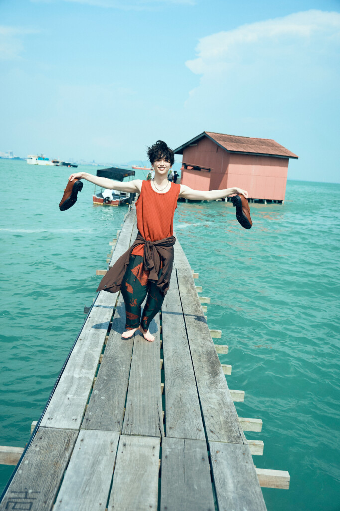 はじめての土地を旅するナチュラルな表情から、モードな衣装に身を包み撮影したソリッドなカット。