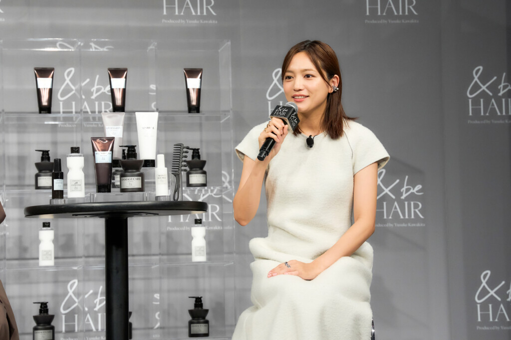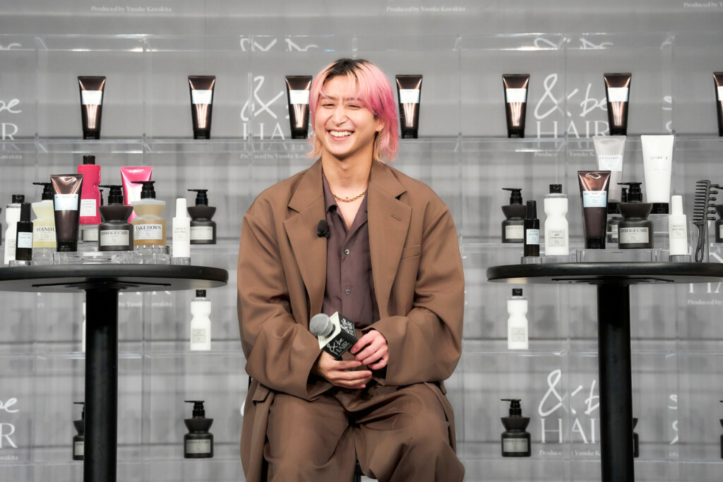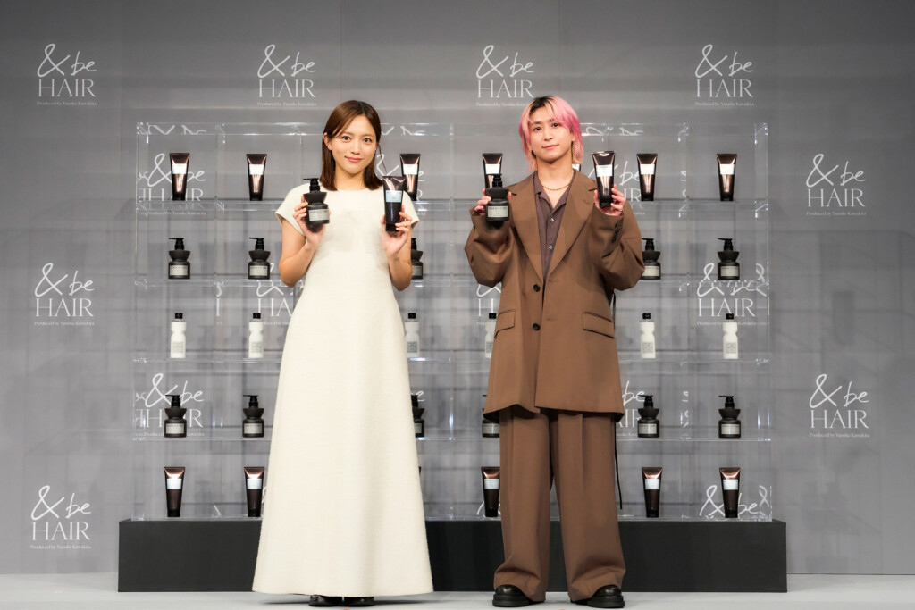 会の冒頭では、<&be HAIR>ブランドプロデューサーの河北裕介が登壇し、新商品『&be ダメージケアシャンプー』と『&be リペアレスキュートリートメント』の発売を発表。