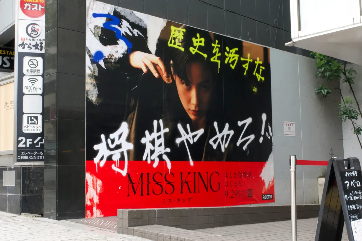 「ABEMA」はこのたび、東京の渋谷と千駄ヶ谷に、『MISS KING / ミス・キング』の広告を掲出した。