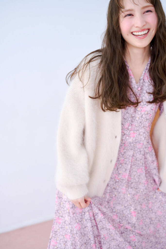 百田から溢れるきらめきとポジティブなエネルギーは、『TOCCA』がブランド創設時から大切にしてきた“ロマンティック・モダン”の世界観と響き合う。