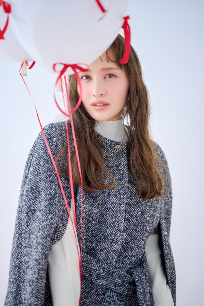 撮影では、百田が全12LOOKの秋冬スタイリングを着こなしている。