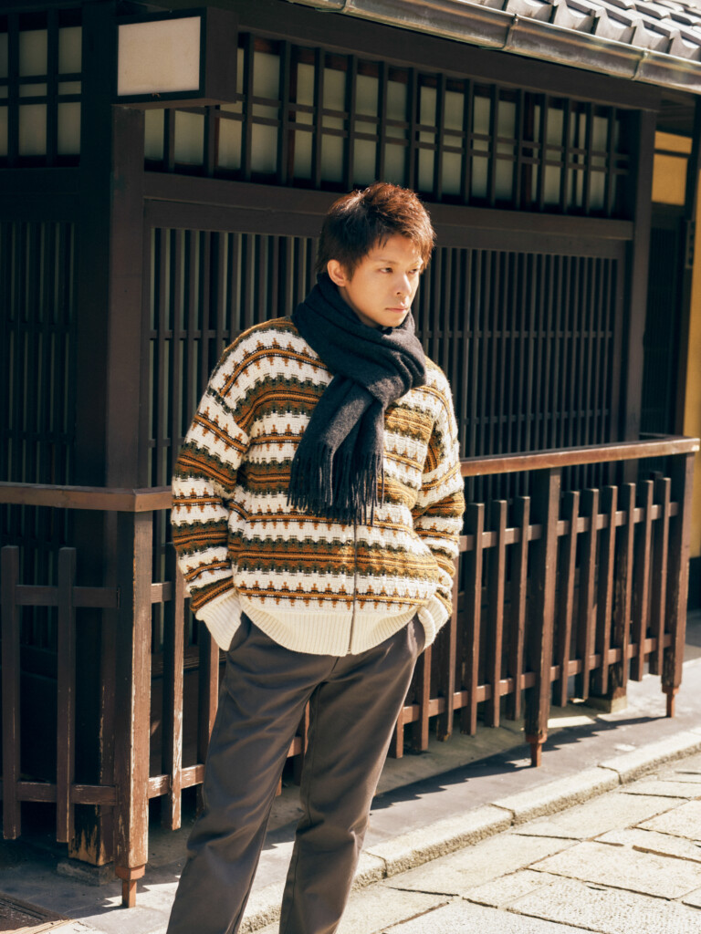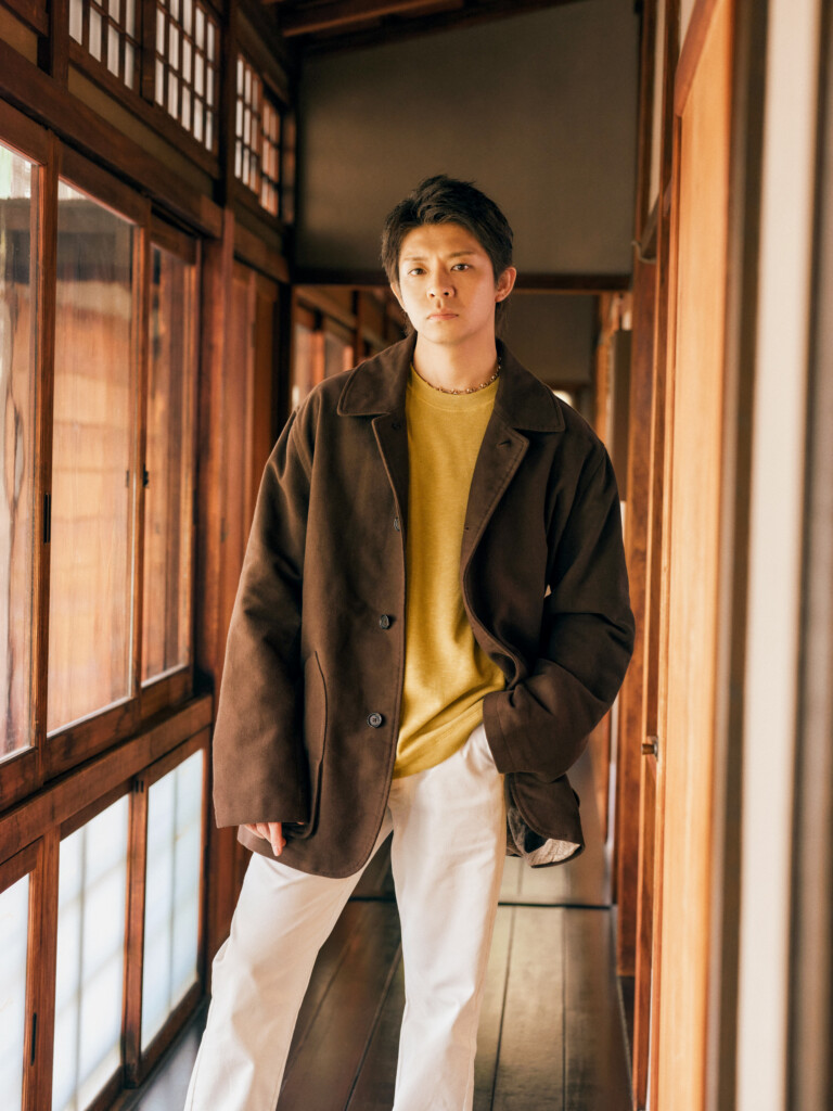 高品質なファブリックと現代の探検家にインスピレーションを与えるようにデザインされているタイムレスなコレクションを通して、岸優太のリラックスした佇まいや深まる冬の寒さに寄り添う洗練されたスタイルを紹介している。