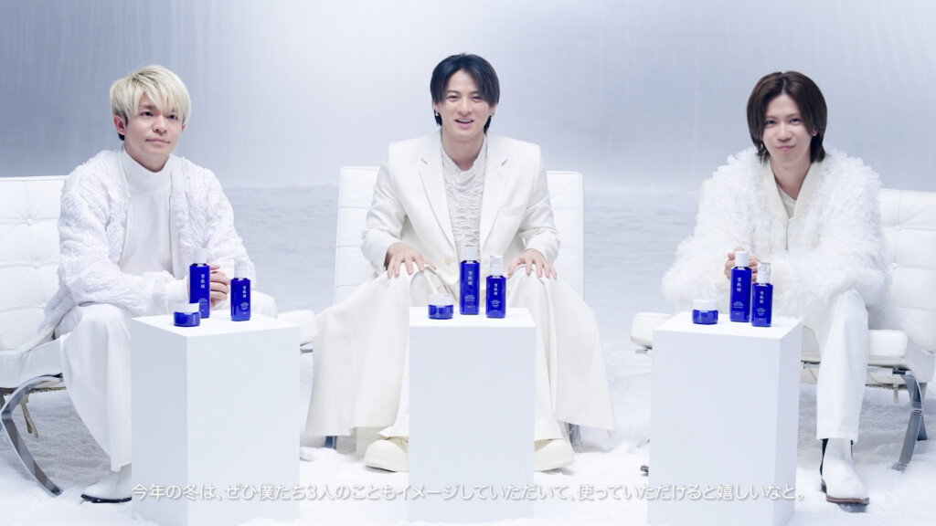 [平野]本当にすごく幻想的で、雪の世界に僕たち3人が『雪肌精』の化粧水・乳液・クリームの3つとリンクして、雪の化身のような存在になっていて、とても素敵なので、ぜひ見ていただけると嬉しいなと思います。