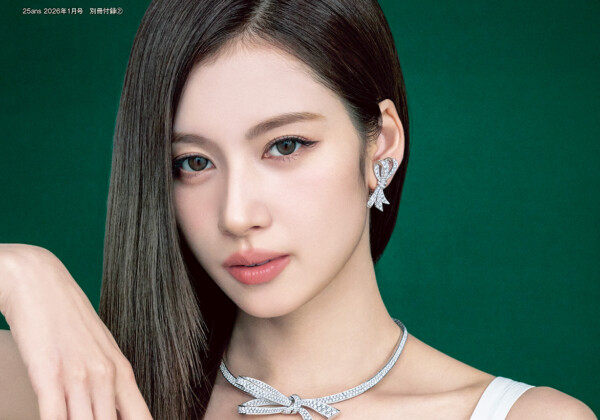 モードな冬の装いに、「気恥ずかしいというフェーズを抜け出して、好きになってきた」と語る自身のメンバーカラーのブルーのジュエリーを合わせて、クールな表情から天真爛漫な笑顔まで 、多彩なドレスアップスタイルを披露する。
