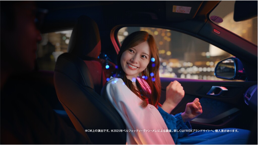 なかでも、SNSで大きな反響を呼びそうなのが「ドライブデート」篇だ。車内という密接な空間で、相手から「次はいつ会える?」と不意に尋ねられ、戸惑いを見せる白石。しかし、一粒のフリスクで余裕を取り戻すと、夜景をバックに「朝までドライブしちゃう?」と茶目っ気たっぷりに切り返す。その破壊力抜群の笑顔と機転の利いたセリフは必見だ。