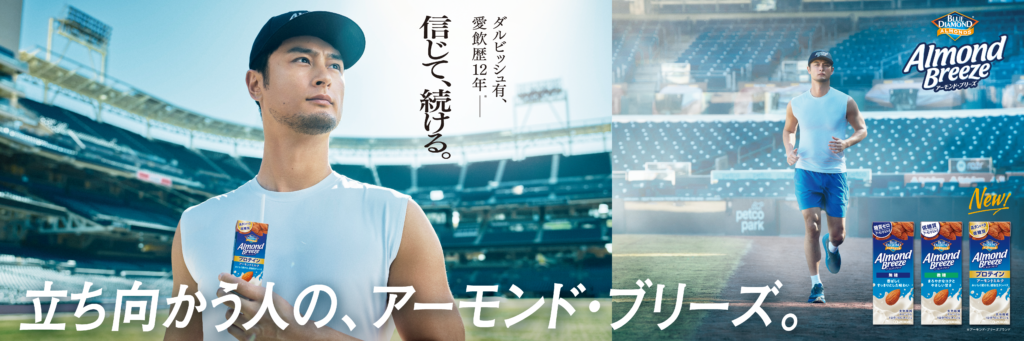 ダルビッシュ有、12年愛飲の「アーモンド・ブリーズ」新CM出演 プロテイン新商品も登場、4月14日から全国放映