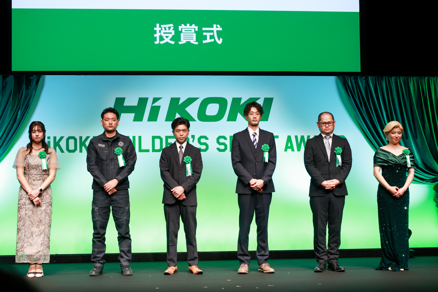 当日は、2025年11月14日~12月9日の募集期間中にエントリーされた方の中から、最終選考に通過した職人6名が来場し、主催者ならびに「HiKOKI」職人応援隊長のヒロミより各部門賞の受賞者の発表・授賞式が行われた。
