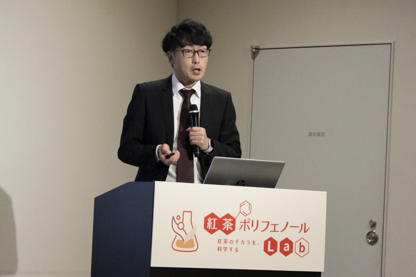 一般社団法人ウェルネス総合研究所執行責任者兼フェローの赤坂幸正氏は、「健康美容意識の高まりに、紅茶に関する研究論文も多く出てきています。多様なチャネルで展開されていることから、第3次紅茶ブームは、長期的な流行になっていくのではと考えています」とコメント。緑茶や烏龍茶と比較し、紅茶の健康機能について聞く機会が少ないと感じ、紅茶ポリフェノールラボとして今回のイベントが行われた。