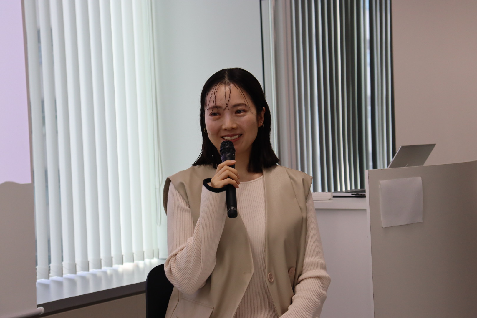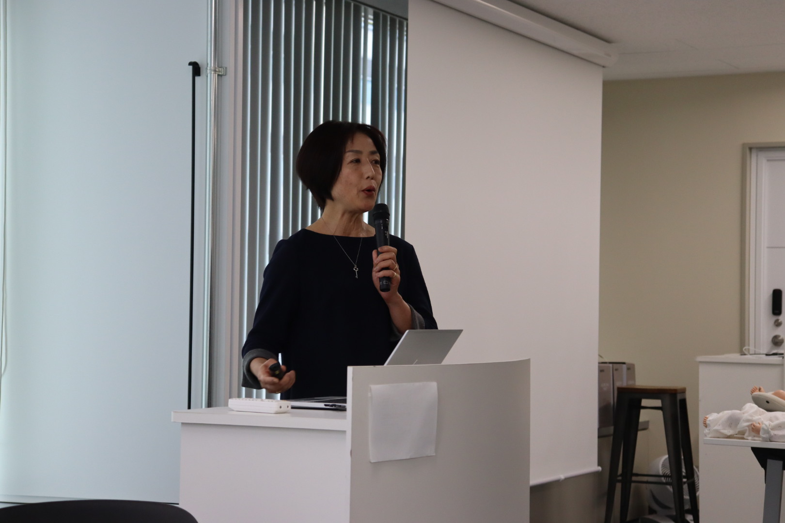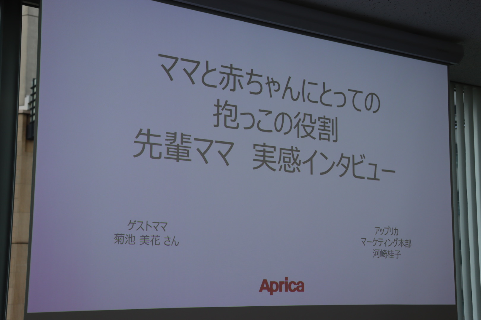 発表会では、1歳10ヶ月と4ヶ月の子どもを育てるママ・菊池美花氏が登壇し、実際の育児体験をもとに抱っこの変化について語った。