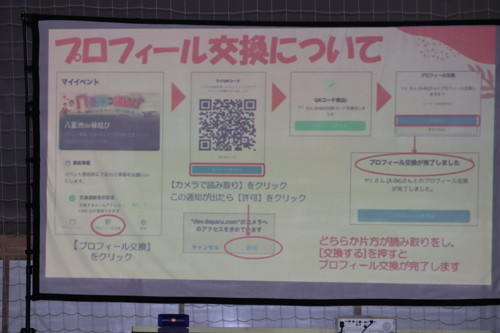 参加者は、自身のスマートフォンを使って事前に入力したプロフィールを交換し、その情報をきっかけにグループトークを行う。その後、レクリエーションとしてボッチャを体験しながら交流を深めるという流れだ。