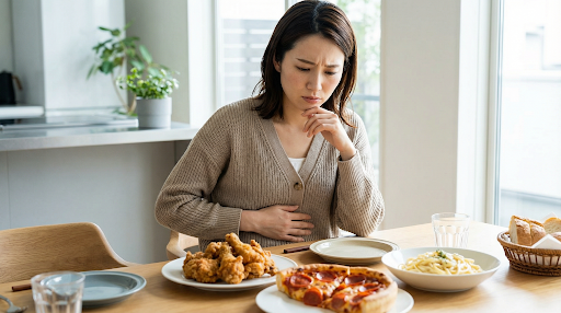 食生活も、症状を左右する大きなポイントだ。脂っこい食事は消化に時間がかかり、胃もたれや吐き気、胃痛の原因になりやすい。香辛料やカフェインなどの刺激物、アルコールのとりすぎも、胃粘膜を刺激して胃痛や胸やけ、下痢につながることがある。
